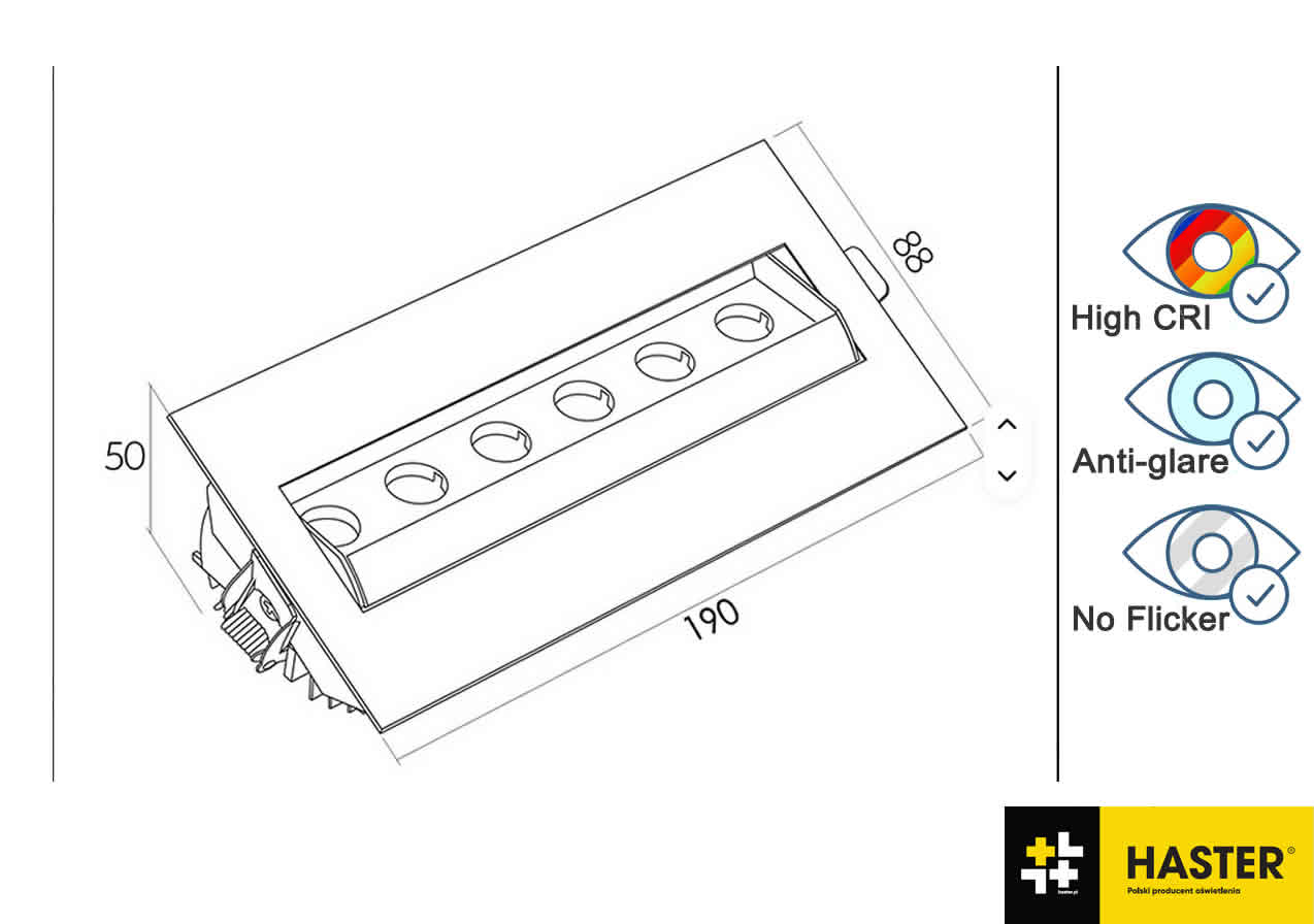 Lampa punktowa uchylna LED o mocy 4W o temperaturze barwowej 4000K. Zasilenie300mA (zasilacz w komplecie). Bardzo wysoki współczynnik oddawania kolorów CRI≥ 90. wydobywa naturalną gamę kolorów i zachwyca swoim światłem.