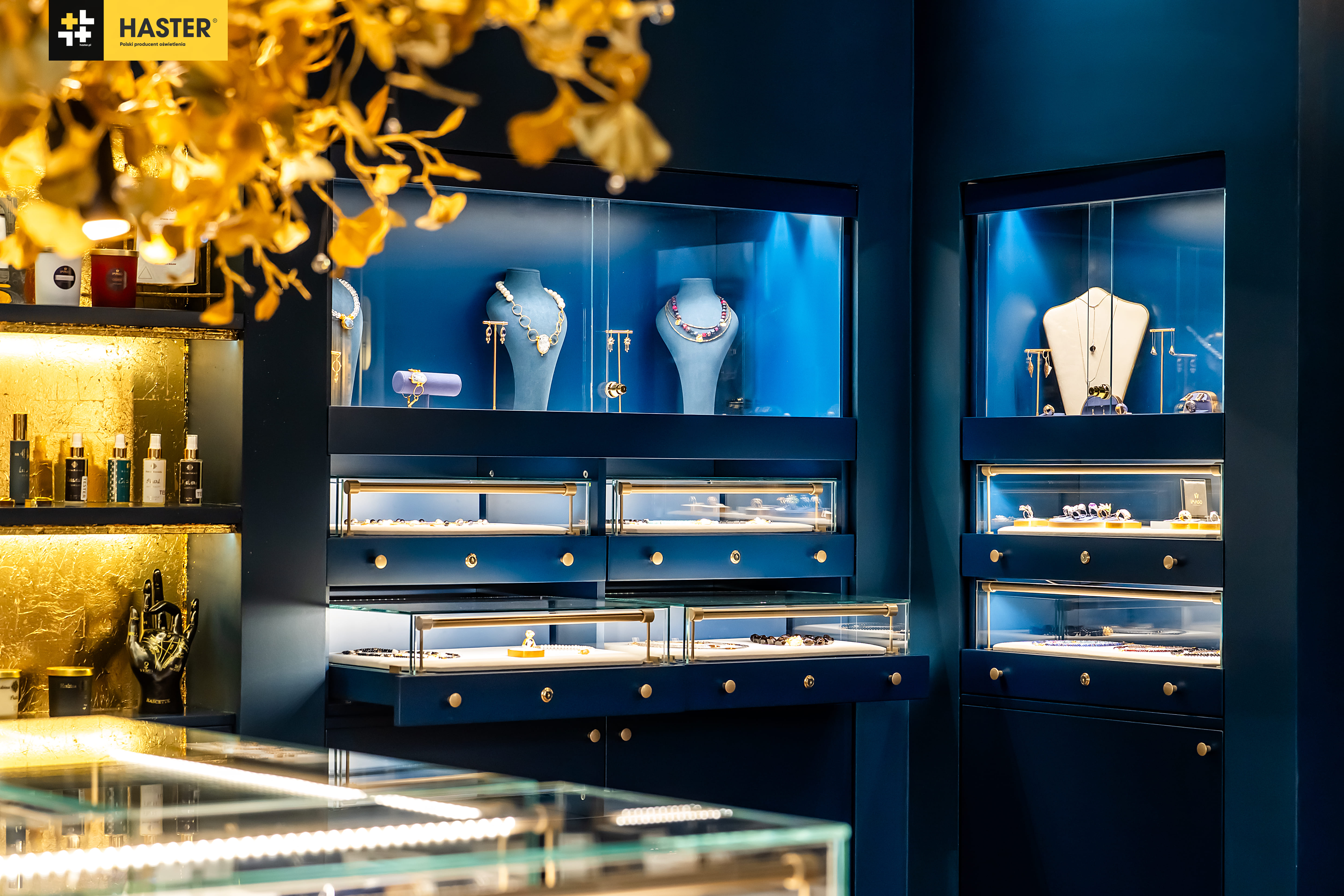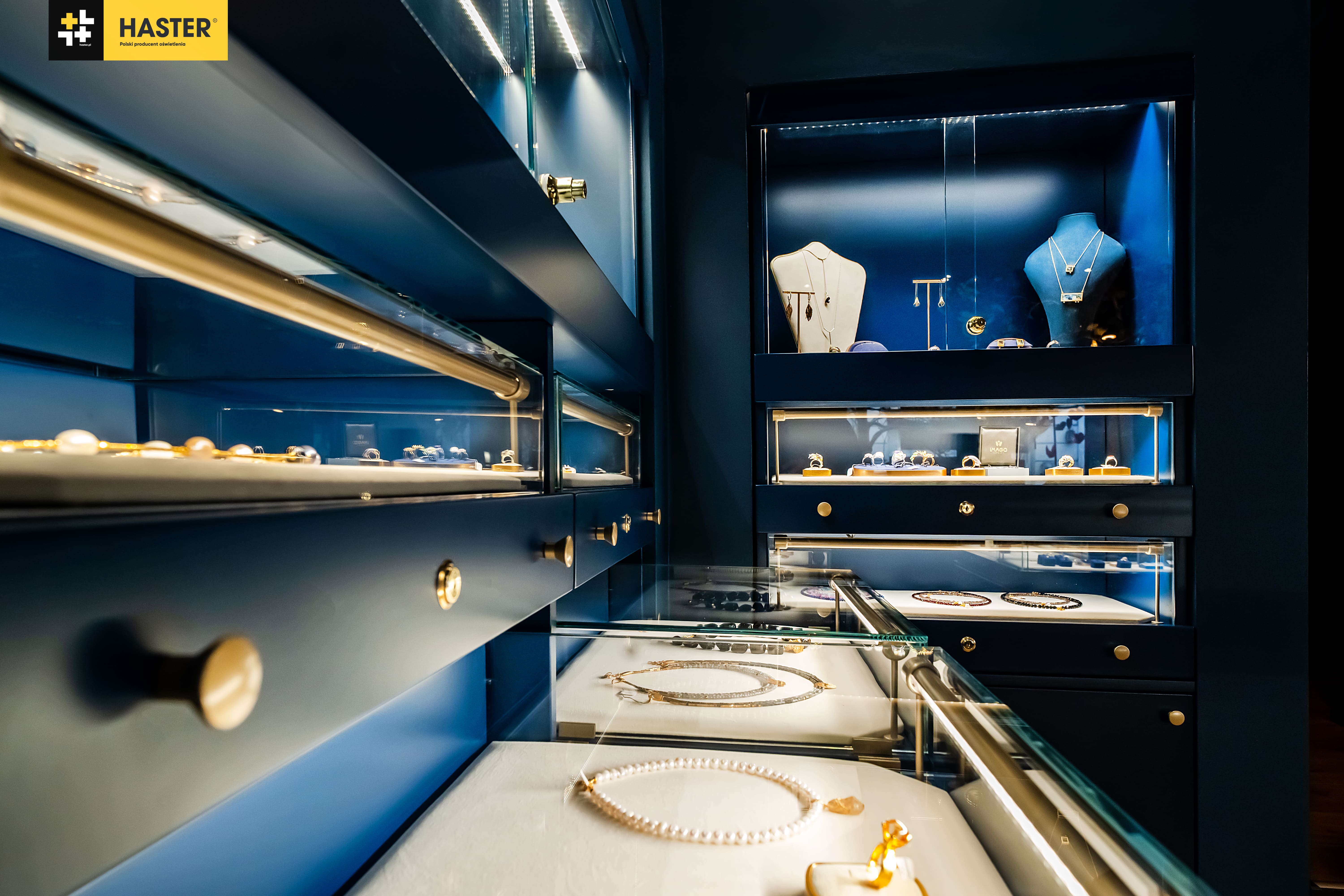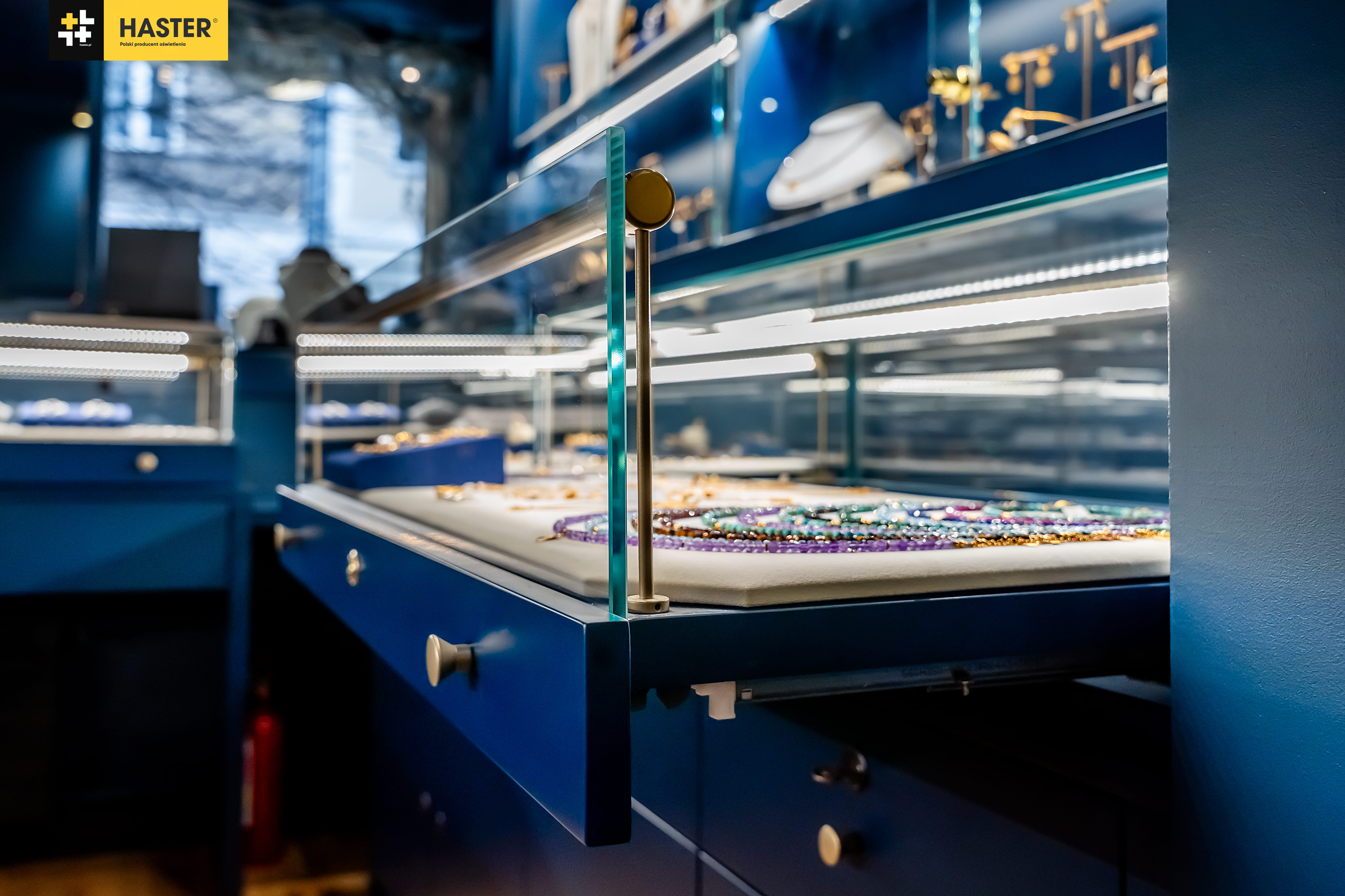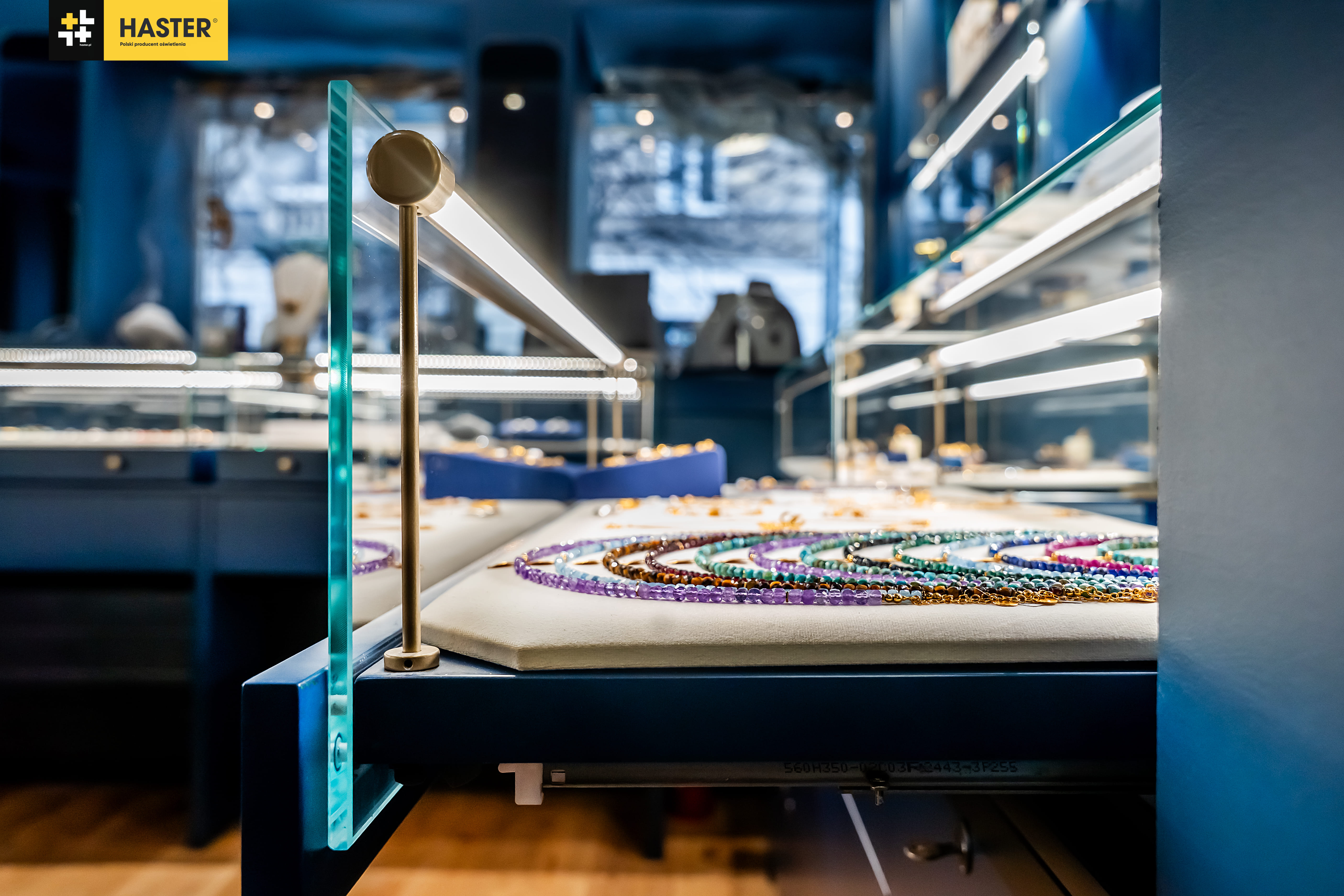 W tej realizacji dostarczyliśmy indywidualnie dopasowane profesjonalne oświetlenie witryn jubilerskich, które doskonale komponuje się z charakterem salonu oraz eksponowaną biżuterią. Do witryn szklanych zastosowaliśmy eleganckie lampy liniowe LED, w rezultacie osadzenie modułu głęboko w oprawie skutecznie ogranicza efekt oślepiania intensywnym światłem. W gablotach szklanych wykorzystaliśmy oświetlenie typu bramka, ponieważ umożliwia ono regulację kierunku świecenia i precyzyjne skierowanie strumienia światła na wybrane elementy ekspozycji. Całość salonu jubilerskiego uzupełniliśmy oświetleniem punktowym, co pozwoliło na dokładne doświetlenie detali i podkreślenie kluczowych produktów. Tak dobrane oświetlenie meblowe i ekspozycyjne podkreśla formę, wykończenie oraz strukturę biżuterii, zwiększając atrakcyjność prezentacji i przyciągając uwagę klientów, a jednocześnie wspierając potencjał sprzedażowy całej przestrzeni.